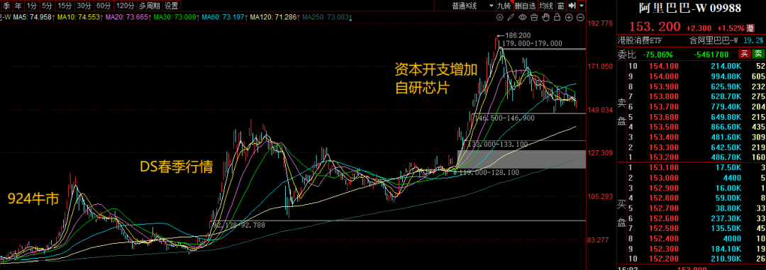 复盘阿里近两年的估值重估之路,可谓是一波三折,好在低点逐步抬高,呈现震荡上行趋势。港股阿里今年涨幅约90%,对得起AI龙头地位。7月8月A股主升,港股因为外卖补贴迟迟未能突破。