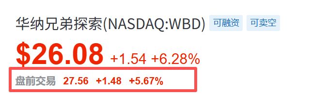 受消息影响,华纳兄弟探索公司股价盘前大涨5%。