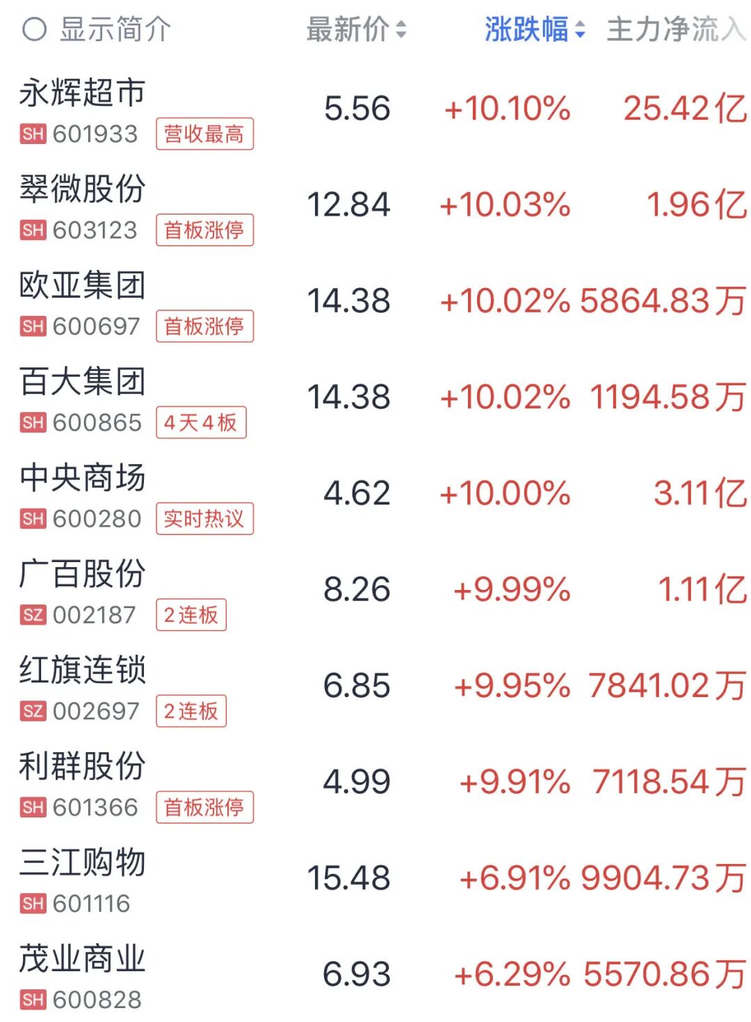 此外,商贸零售板块也逆势走强,板块内个股掀涨停潮。